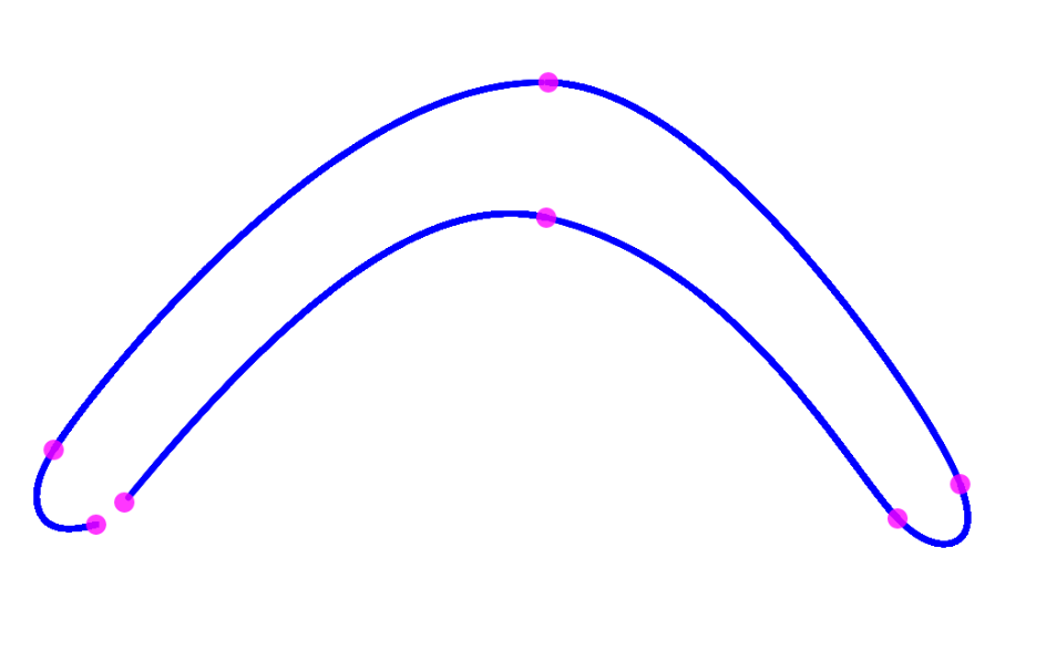 This flowchart breaks down how the program functions on a basic level. Starting with the points placed by the user as inputs and constructing the curve connecting them based on the parameters at each point. These parameters being three separate weights and the segment type. Knowing these, and a few more if the segment is circular, the interpolation curve can be draw.